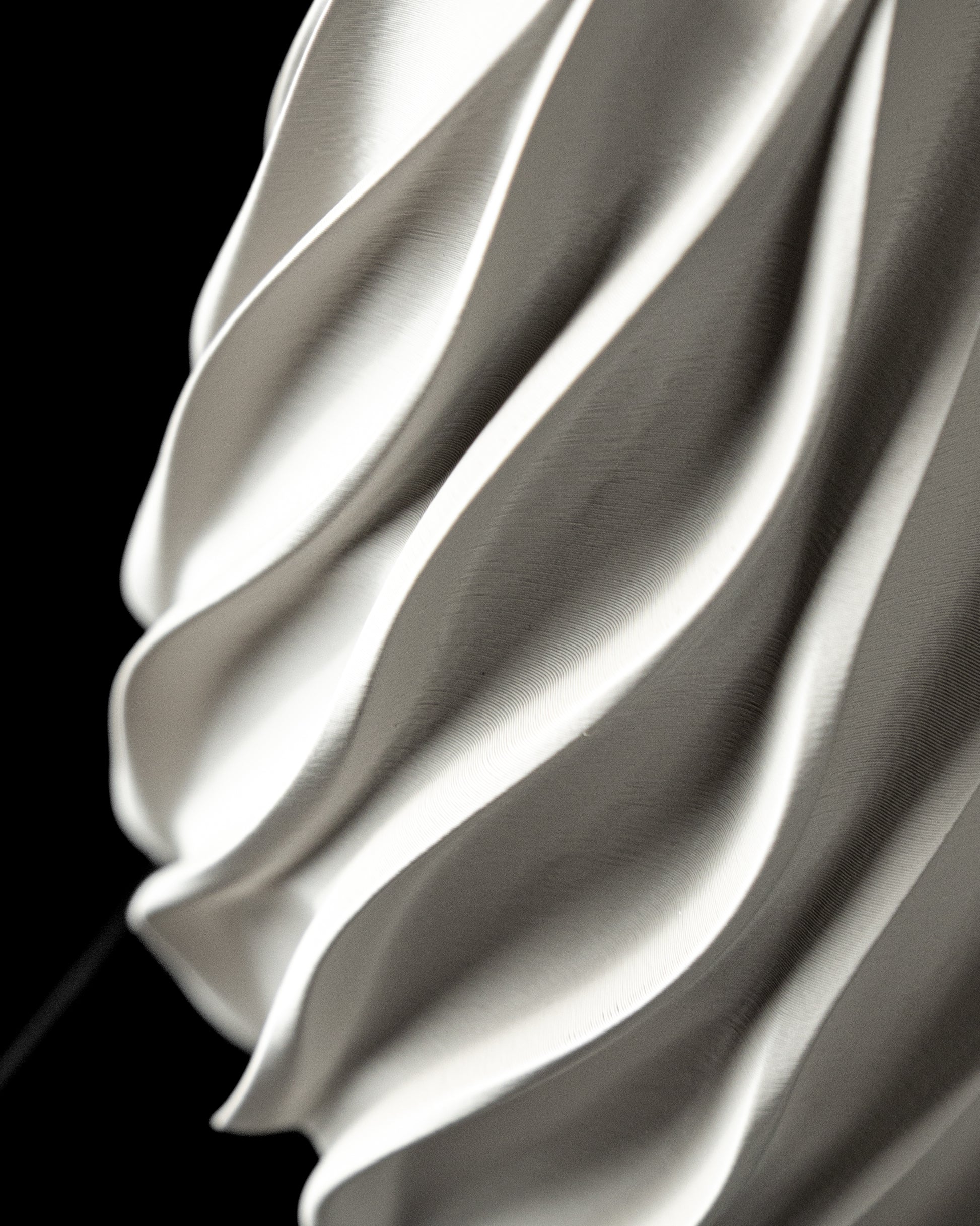 Bringe stilvolle Eleganz in dein Zuhause mit dieser modernen Designvase aus dem 3D-Drucker. Die organisch gedrehte Form und die samtmatte Oberfläche in klassischem Weiß machen sie zum Blickfang auf jedem Sideboard, Regal oder Esstisch.