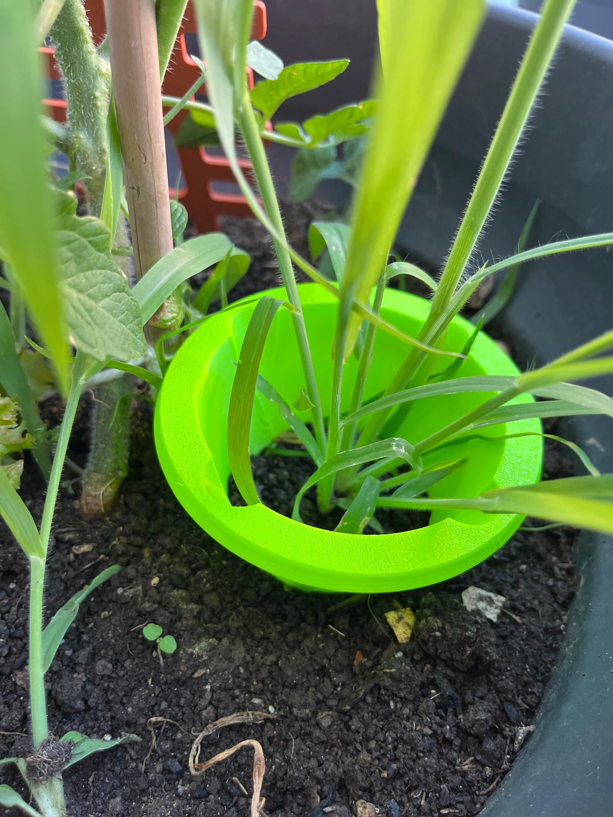 Dank seines durchdachten Designs lässt sich der Ring einfach um die Pflanze oder einen Pflanzstab platzieren. Die geschwungenen Kanten verhindern, dass Schnecken darüber kriechen können – gleichzeitig bleibt die Luft- und Wasserversorgung des Bodens ungestört.